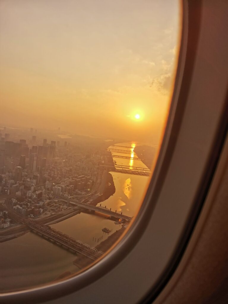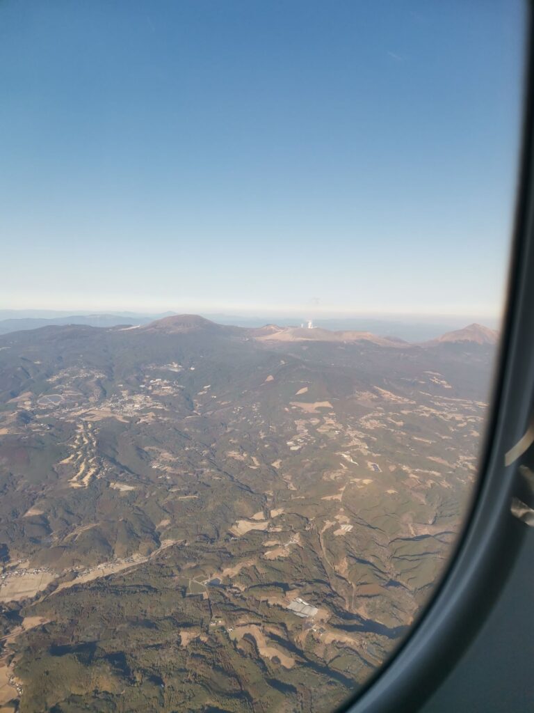 私が飛行機の窓側に座る事はほぼ無いのですが、今回は窓側で鹿児島を発つ際と伊丹に着く前を撮影しました。
