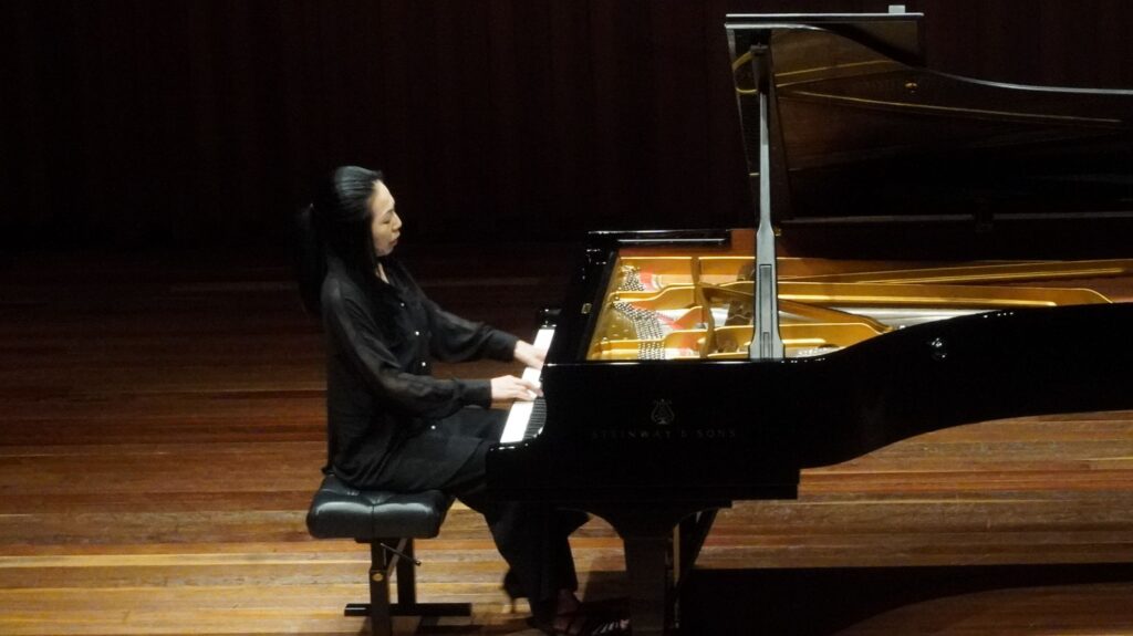 最後の1枚は、私の今年1月の演奏会の写真です。ドレスを着ない方が集中できるような気がしましたので、今回は着ず、黒一色です。私はピアノが好きです。ピアノに向かう時が好きです。