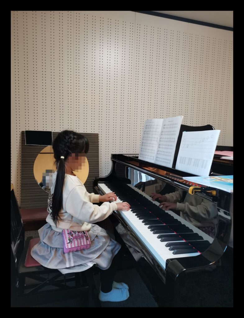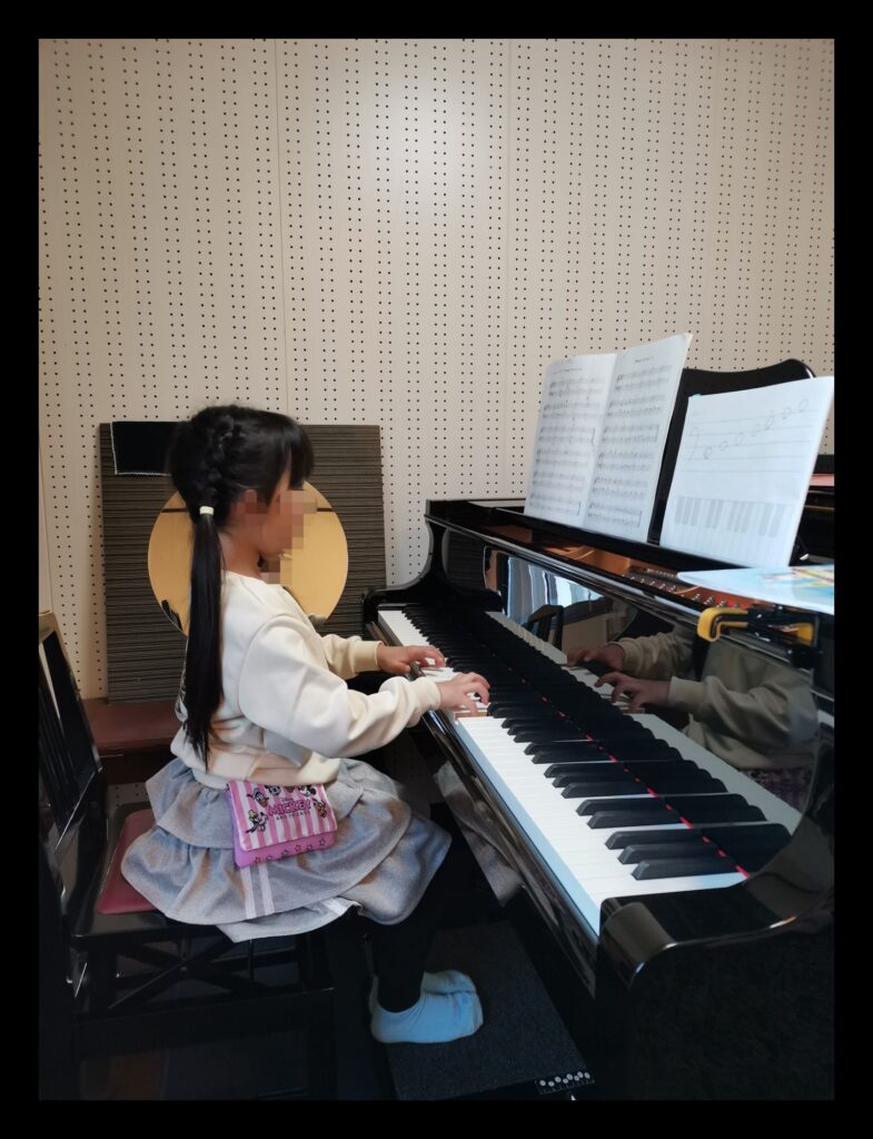 今回のお写真の生徒さんは、当教室に通われて3年経ちました。素晴らしいそして美しい姿勢です。ピアノの前に座られますと、手がピアノに合わせたフォームになります。弾かない指を上げる、第1関節を曲げる、5番の指の際は肘を外にして指先を鍵盤に当てる⋯。レッスンの際、お母様がいつも横で見てくださっています。先日、素晴らしいと思った事がありました。妹ちゃんも当教室でレッスンにいらして頂いておりますが、お姉ちゃんのレッスンの際、お母様が妹ちゃんに「近くで見てきなさい」とお声がけをされていました。「正解の形(フォーム)」は、見て覚える事も重要です。